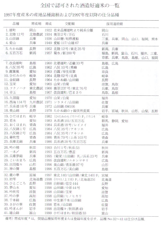 酒造好適米・山田錦・華吹雪・雄町・亀の尾